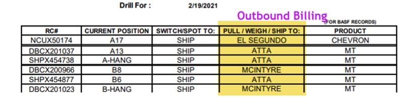 On their switch requests, all cars will have a comment in the “Pull/ Weigh” column.