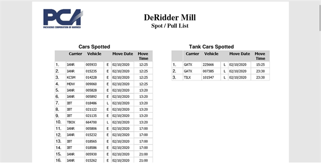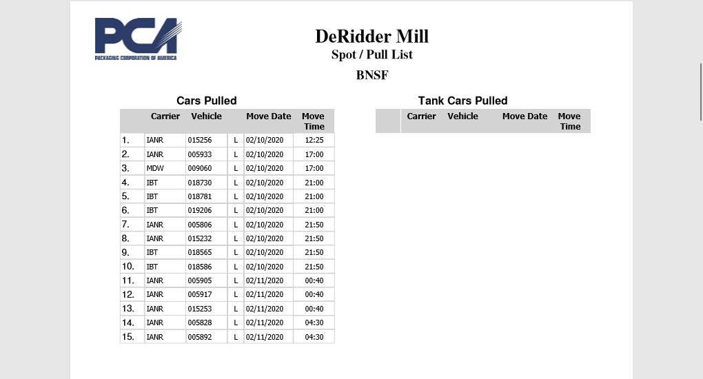 This page will have all the cars PCA is billing out to leave with the BNSF the next day. Tank cars will not be billed out until after 10:00am.