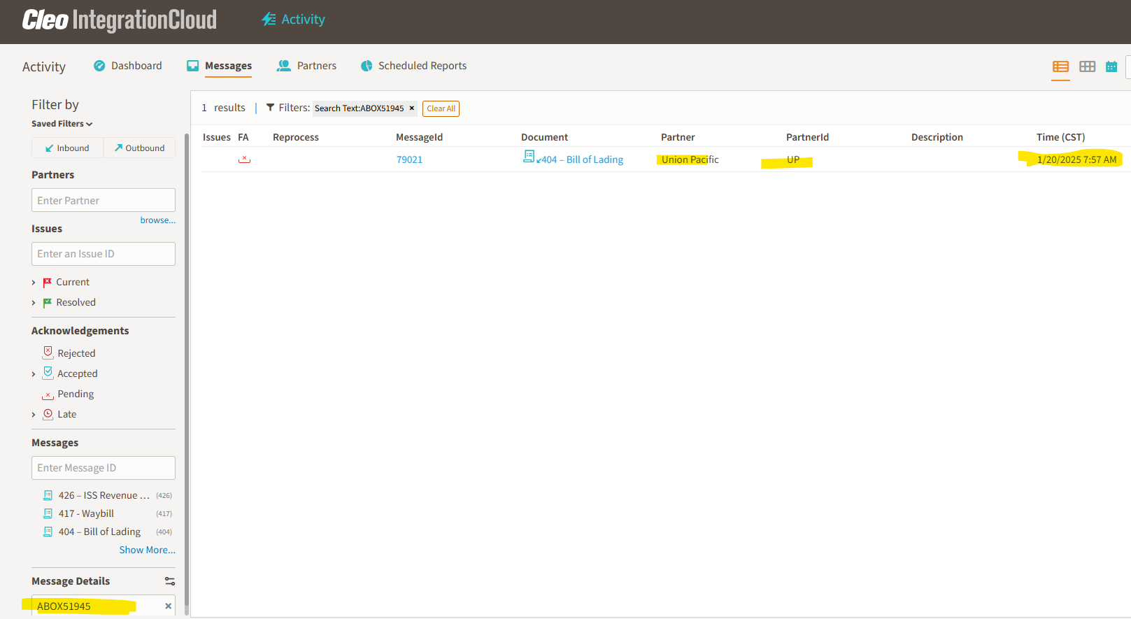 Step 2: If the car was going outbound as a load we will need to re-cue the loaded billing through CLEO.