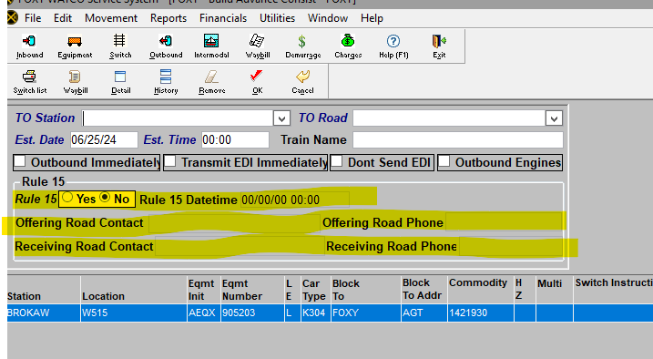 EDI/Advance = Advance is the "electronic" billing version of this list. When you call/email a Class 1 you will request an Advance for the cars needed, this will trigger a consist to hit our system as an inbound consist/list. OFFLINE.