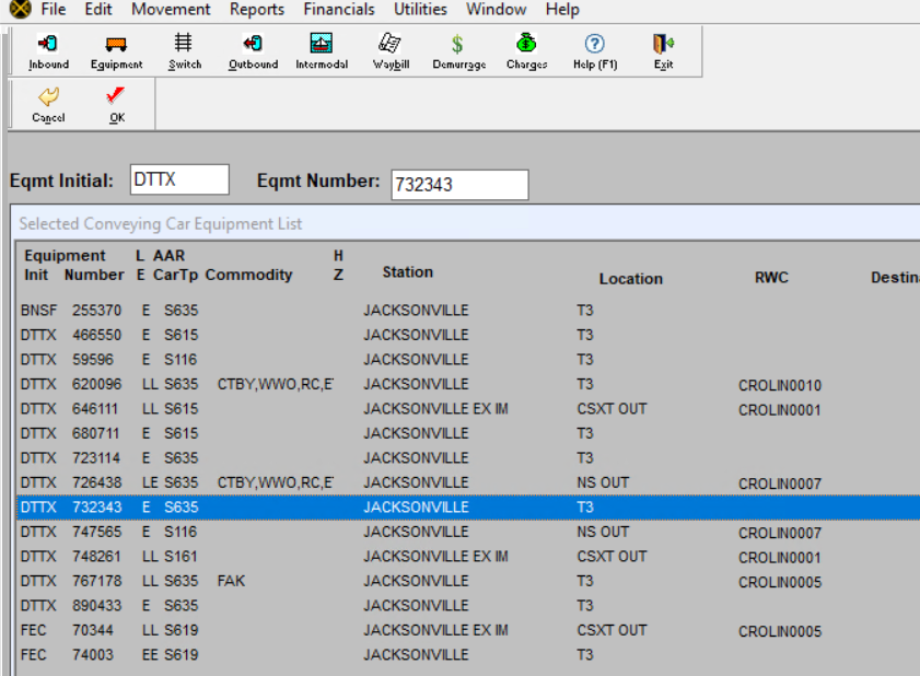 3. Type in the containers hitting enter after each one. (if there are more than 6 numbers on the container, only type in the first 6 numbers). As you type, they will highlight in blue. Hit OK. (If cars are not showing up, they are NOT billed.)