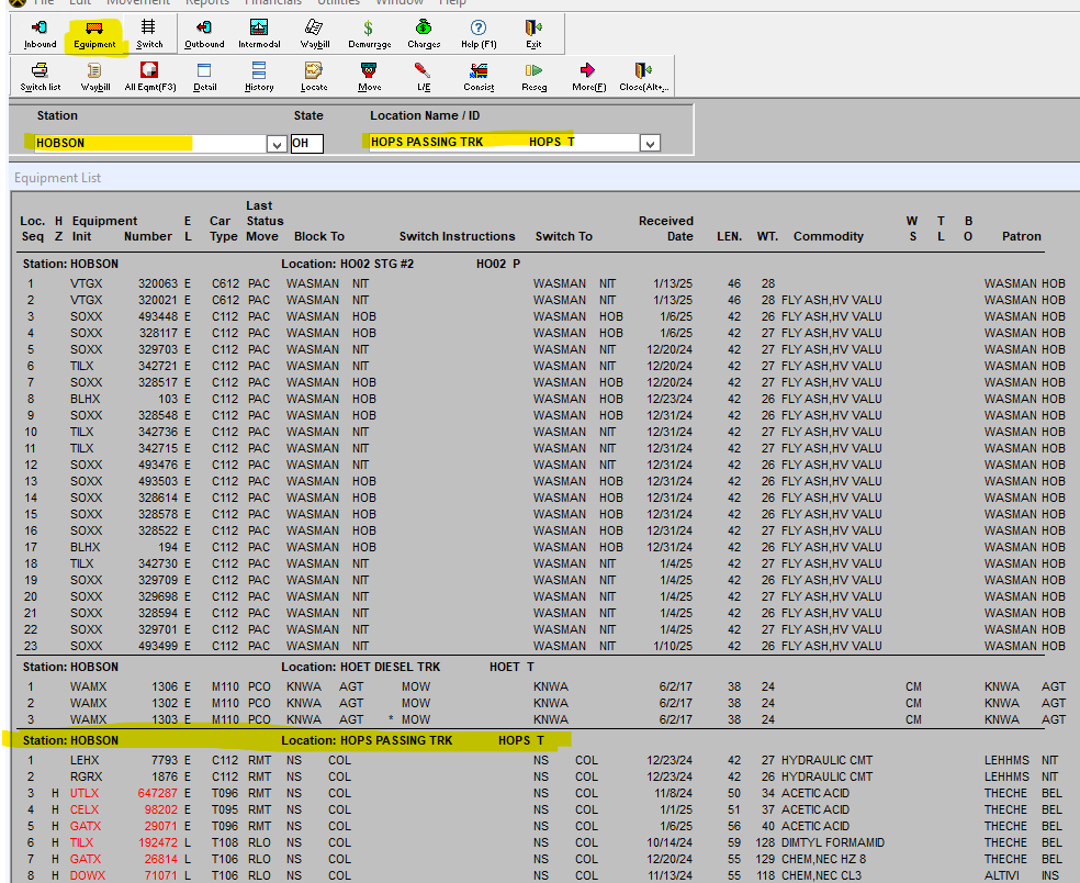 STEP 1: Select Equipment and fill in Station and Location info. If there is a trace car, you can find your cars by selecting Equipment and then Locate. This is the KNWA as stated in the title.